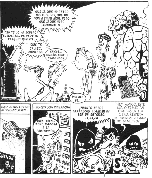 Más dibujos en la sección Superlópez visto por otros autores. El dibujante almeriense AleS saca a escena brevemente a Superlópez y al enemigo del Supergrupo en su divertido cómic "Los Vengativos vs. Los 4 Fanáticos". Gracias a Diego Pérez, especialista en parodias
