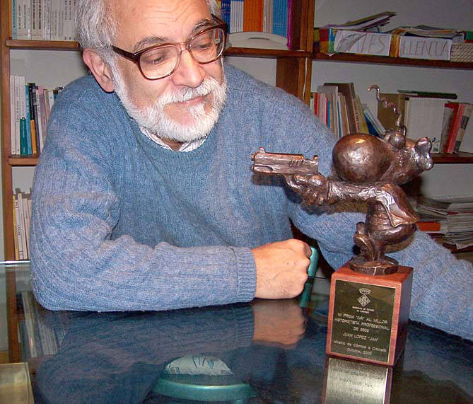 Y yo que la ponía porque salía el premio... No sé si se ve pero en la placa pone "premi Ivà al millor historietista professional de 2005 Juan López "JAN"".