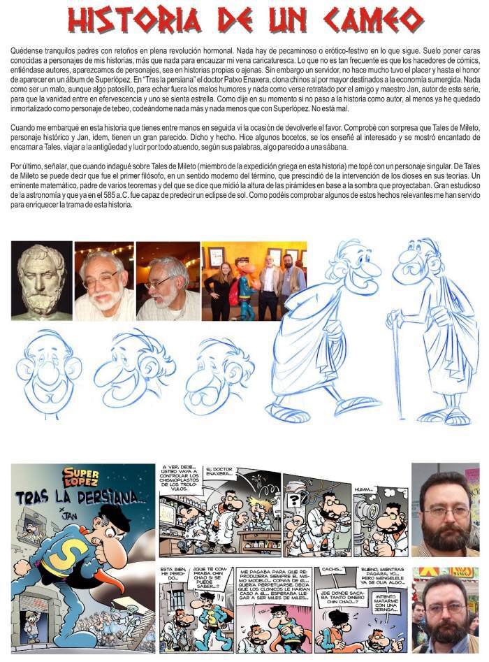 También durante el mes de Mayo se pondrá a la venta "Odisea en Iberia", el tercer álbum de Tartessos, la serie de Paco Nájera. El dibujante se ha basado en JAN para crear la apariencia de Tales de Mileto, tal como nos cuenta en una de las páginas interiores. Queda añadido a Superlópez por otros autores aunque no se trate de Superlópez sino del propio JAN..