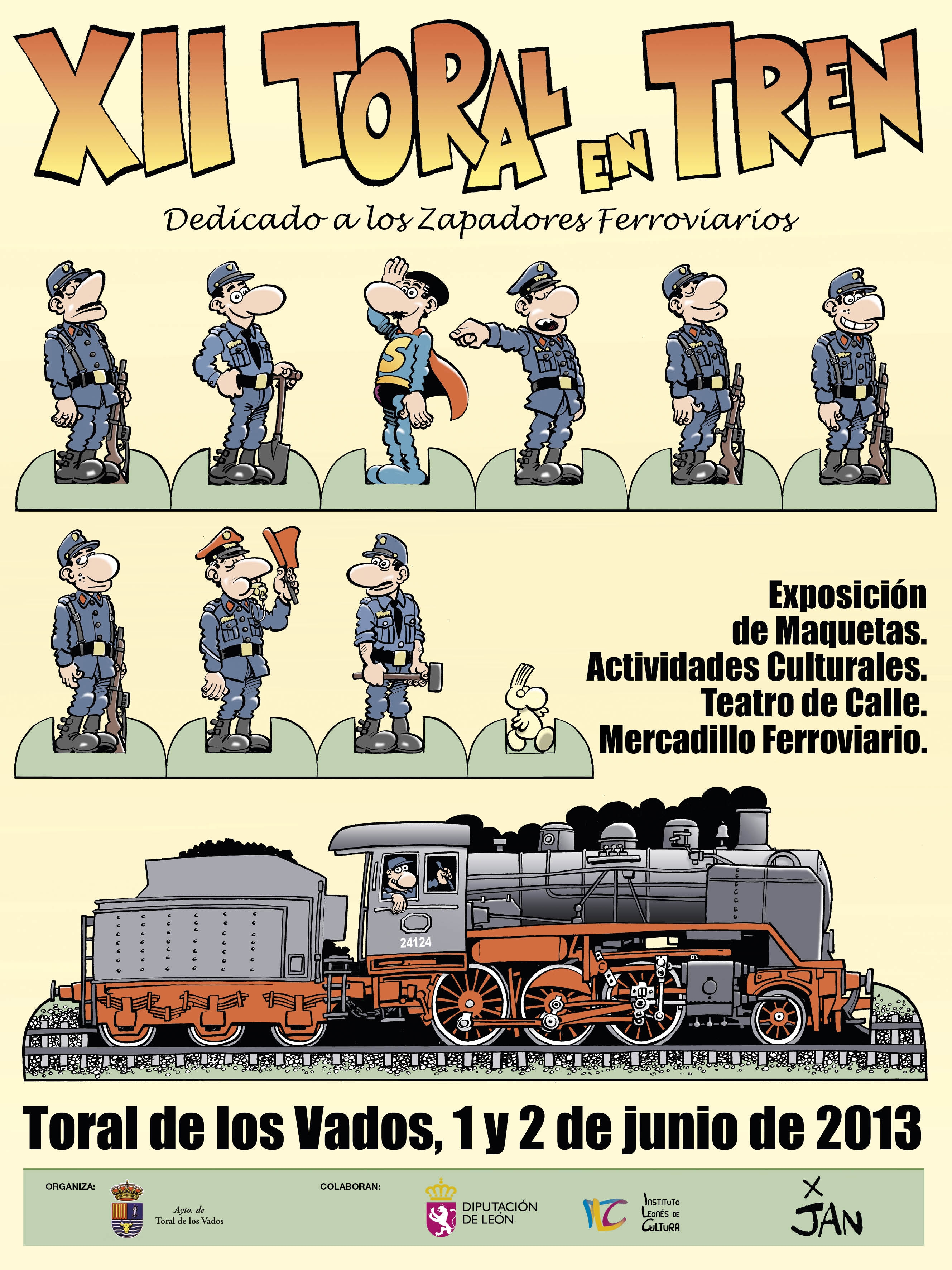 Sobre lo del merchandising decirte que es muy facil. En el año 2005 me puse en contacto con la organización del evento que muy amablemente me envió los folletos, posters y pegatinas de ese año y de los anteriores. A partir de ese año y cada vez que se acerca la fecha del Toral en Tren si no llamo yo al ayuntamiento me llama la chica responsable para avisarme. Las camisetas las venden los dias de la fiesta pero por cuestion de distancia a mi me las mandan por correo contrareembolso. Incluyendo en el paquete todos los folletos que os indico mas arriba.
