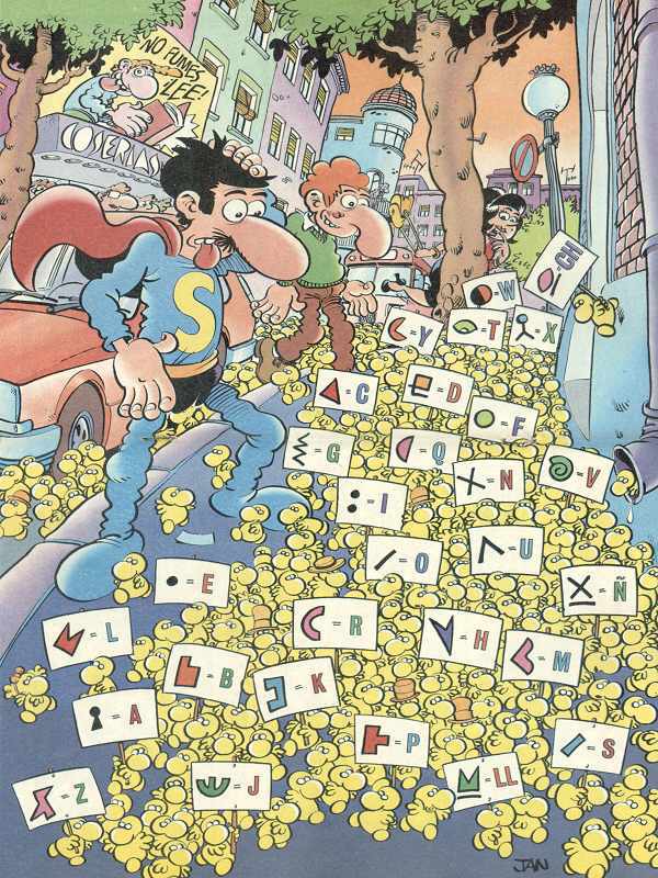 Jan sigue trabajando en SL37 "El Dios Del Bit", la nueva aventura de Superlópez. Aquí tenéis otra página de adelanto.