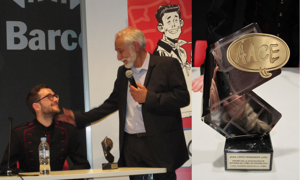 30º Salón del Cómic de Barcelona: JAN recibirá el Viernes 4 el premio a toda una carrera profesional de la AACE (Asociación de Autores de Cómics de España) en la Sala de Conferencias a las 20:00. ¡Enhorabuena! Y el Sábado 5 estará firmando en el stand de Ediciones B de 12:00 a 14:00.