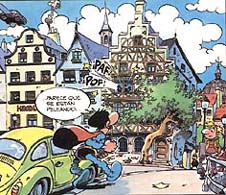 En el número anterior te contaba cómo utilizaba la fotografía, los apuntes o la simple observación para documentar el ambiente de mis viñetas. Seguramente te habrás preguntado si no soy realmente Superlópez. Es cierto que en casos como, por ejemplo, la aventura de «AL CENTRO DE LA TIERRA», yo no habría podido pasar más abajo del metro de Barcelona y encima pagando billete. Tampoco podía ir a Islandia, que además, es un rato caro... Ahí es cuando se ha de recurrir a. los libros y las revistas dé viajes. Esa historieta tiene su base en la idea de que se puede dar a conocer, difundir o proponer la lectura de un libro continuándolo. El «VIAJE AL CENTRO DE LA TIERRA» de Julio Verne es uno de los mejores libros de aventuras que jamás se han escrito. No voy a extenderme, a mí me gusta y basta. Cosas mías. ¿Está claro? Bien pues, iba por la treinta y cuatro lectura y se me ocurrió que el protagonista, Axel, que se casaba al final con la ahijada del profesor Lidenbrock, podía muy bien tener en su descendencia a Jaime González Lidenbrook. Eso fue a raíz de un paseo. por Calella que, como todos sabemos, es un «municipio alemán» situado en Cataluña; no se sabe por qué... De ahí me imaginé a mis personajes viajando por idéntico trayecto en el mismo arden que en la novela, lo que, astutamente, incita a comprobarlo paso a paso. ¡Je, al fin logré que un lector de cómics lea un libro! ¡Tú! ¿Que no...? ¿Y a qué esperas, pedazo de...? Bueno, sigamos con el trayecto. Lo importante era que la historieta se aproximara lo más posible a la atmósfera del libro, y como buena parte de ella la fijan las ilustraciones de la época que devienen en clásicas y rara es la edición que no las incluye, las estudié, así como las descripciones del trayecto. Agarré libros de espeleología, geología, mineralogía y diccionarios, que no veas, vaya empollón. Cuando me cansé del rollo vi que no tenía más remedio que dibujar la historieta en cuestión, pues de lo contrario habría perdido el tiempo como un burro. Pruébalo, el truco funciona. Nada, Cosas mías. Como puedes ver, (pica en las imagenes) utilicé la casa del profesor Lidenbroók tal como se describe en el libro y las ilustraciones de Riou (1864); También me inspiré en ellas para los interiores de la tierra. Lo demás, como las vistas de Londres, París, Holanda, Hamburgo... son meras fotografías de libros revistas, postales, etc... Otras vistas como el restaurante donde López decide repentinamente ir con sus amigos al centro de la tierra, son apuntes del local y su dueño, hechos distraídamente en una servilleta de papel mientras comía un "arrós del dijous". Por cierto que al cabo del año de salir aquel álbum alguien debió enseñárselo al dueño del restaurante y decirle que yo era el autor, pues un buen día me sorprendió negándose a cobrar la cuenta y pidiéndome la clásica dedicatoria. Un día de estos pienso intentarlo con el Ritz o el hotel Princesa Sofia... Cosas mías. |